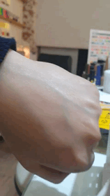 흰색 크림색의 액체 제형이고 수분과 크림층이 잘 섞이도록 흔들어 준다음 이마에 1번 양볼에 1번씩